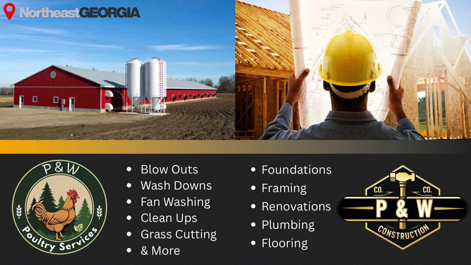 At Price & Williams LLC, we make your home and poultry farm reflect your vision. From flooring, painting, and remodeling to full renovations, we deliver lasting beauty and value. For farms, we build and maintain efficient, sustainable poultry systems that support healthy flocks. With trust, transparency, and quality service, we turn your goals into reality—creating homes and farms built for your future.